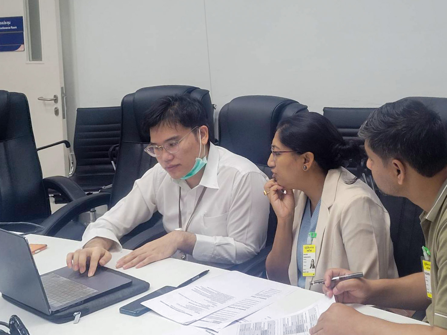 รศ.นพ.ตรงธรรม ทองดี หัวหน้าภาควิชา ร่วมกับประธานฝ่ายการศึกษา และหัวหน้าสาขาวิชาเวชศาสตร์นิวเคลียร์ ร่วมในการตรวจประเมิน