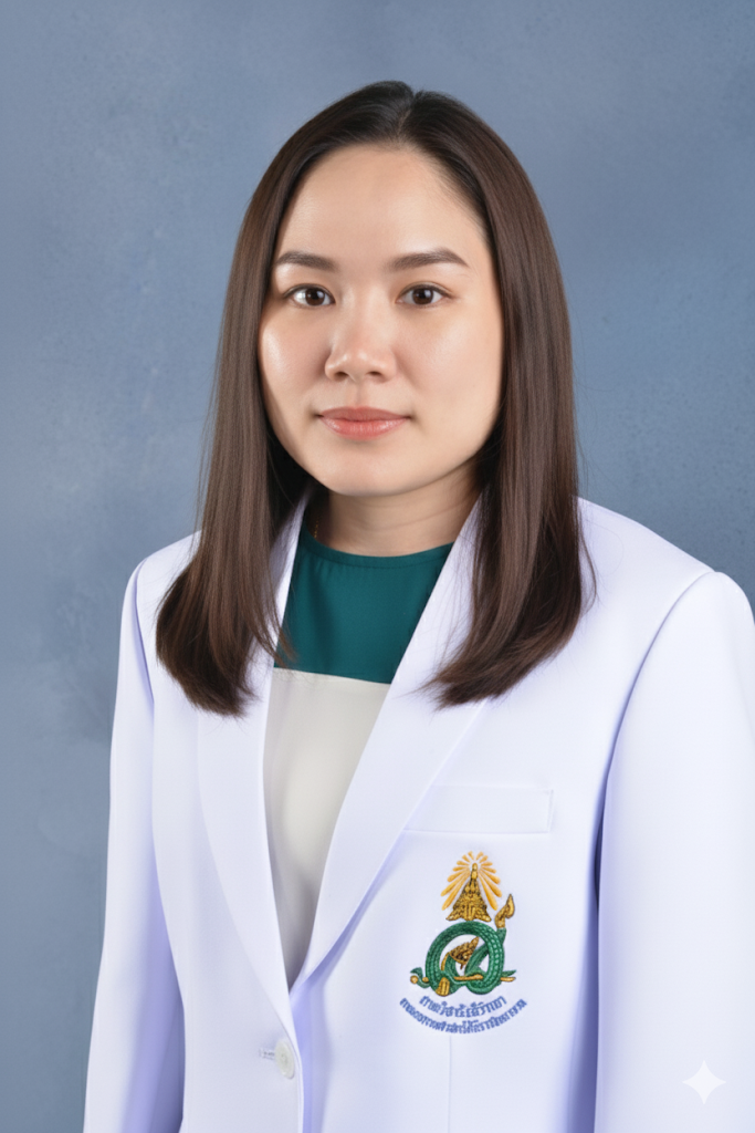 Education : พ.บ.(เกียรตินิยมอันดับ1), ป.ชั้นสูง (รังสีวิทยา), ว.ว. (รังสีวิทยาวินิจฉัย), ว.ว. (ภาพวินิจฉัยชั้นสูง)