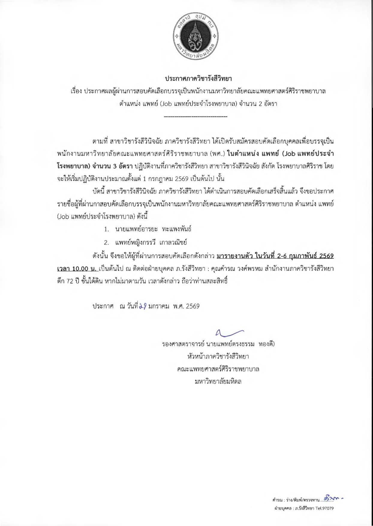 ประกาศ ประกาศ ผลการคัดเลือก แพทย์ (Job แพทย์ประจำโรงพยาบาล) สังกัดสาขาวิชารังสีวินิจฉัย 3 อัตรา ประกาศรับสมัครพนักงานการแพทย์และรังสีเทคนิค สังกัดสาขาวิชารังสีวินิจฉัย 3 อัตรา ประกาศรับสมัครพนักงานธุรการ สังกัดสาขาวิชารังสีวินิจฉัย 2 อัตรา ประกาศรับสมัครแพทย์ประจำโรงพยาบาล สังกัดสาขาวิชารังสีวินิจฉัย 3 อัตรา ประกาศรายชื่อผู้มีคุณสมบัติเข้ารับการคัดเลือกบรรจุเป็นอาจารย์ สังกัดสาขาวิชารังสีวินิจฉัย 1 อัตรา ประกาศรายชื่อผู้มีคุณสมบัติเข้ารับการคัดเลือกบรรจุเป็นผู้ช่วยอาจารย์คลินิก สังกัดสาขาวิชารังสีวินิจฉัย 1 อัตรา ประกาศรับสมัครอาจารย์ สังกัดสาขาวิชารังสีวินิจฉัย 1 อัตรา ประกาศรับสมัครบุคลากร สาขาวิชารังสีวินิจฉัย 5 อัตรา ประกาศรายชื่อผู้เข้าร่วมโครงการ Open House เพื่อการฝึกอบรมต่อระดับแพทย์ประจำบ้าน ปีการศึกษา 2569 (Onsite and Online) ภาควิชารังสีวิทยา คณะแพทยศาสตร์ศิริราชพยาบาล วันศุกร์ที่ 5 กันยายน 2568 และ วันศุกร์ที่ 12 กันยายน 2568 ประกาศรับสมัครแพทย์ประจำโรงพยาบาล สังกัดสาขาวิชารังสีวินิจฉัย 1 อัตรา ประกาศรับสมัครบุคลากร สาขาวิชารังสีวินิจฉัย 5 อัตรา ประกาศรับสมัครบุคลากร สาขาวิชารังสีวินิจฉัย 1 อัตรา ประกาศรับสมัครแพทย์ประจำโรงพยบาล สาขาภาพวินิจฉัยระบบประสาท 1 อัตรา รับสมัครแพทย์ประจำโรงพยาบาล ปฏิบัติงาน SiSKN 2 อัตรา รับสมัครพนักงานทั่วไป 3 อัตรา รับสมัครพนักงานการแพทย์และรังสีเทคนิค 4 อัตรา ประกาศรับสมัครบุคลากร สาขาวิชารังสีวินิจฉัย 11 อัตรา รับสมัครพนักงานการแพทย์และรังสีเทคนิค 8 อัตรา รับสมัครพนักงานทั่วไป 2 อัตรา รับสมัครพนักงานสถานที่ 1 อัตรา งานประชุมวิชาการ หัวข้อ “Head and neck meeting: Imaging approach and update” อบรมเชิงปฏิบัติการเรื่อง "เทคนิคการเขียนคู่มือปฏิบัติงานจากงานประจำ" ประกาศผลผู้ผ่านการสอบคัดเลือกบรรจุ ตำแหน่ง “แพทย์ประจำโรงพยาบาล”ประกาศ ณ วันที่ 1 ธันวาคม พ.ศ.2564 แนวทางปฏิบัติในการรับ-ส่งเพื่อฝึกอบรม/ปฏิบัติงาน ในสถานการณ์การระบาดของโรค COVID-19แนวทางปฏิบัติในการรับ-ส่ง นักศึกษาสาขารังสีเทตนิค นักศึกษาปริญญาโทหลักสูตรฟิสิกส์ การแพทย์แพทย์ประจำบ้าน และแพทย์ประจำบ้านอนุสาขา เพื่อฝึกอบรม/ปฏิบัติงาน (Elective) ในสถานการณ์การระบาดของโรค COVID-19 เปิดรับสมัครแพทย์ (Job แพทย์ประจำโรงพยาบาล)ภาควิชารังสีวิทยา เปิดรับสมัครแพทย์ (Job แพทย์ประจำโรงพยาบาล) จำนวน 4 อัตรา หรือติดต่อสอบถามขอใบสมัครได้ที่ สำนักงานภาควิชารังสีวิทยา ตึก 72 ปี ชั้นใต้ดิน เบอร์โทรศัพท์ 02-419-7079 (ในวันเวลาราชการ) ประกาศภาควิชารังสีวิทยา คณะแพทยศาสตร์ศิริราชพยาบาลเนื่องด้วยสถานการ
